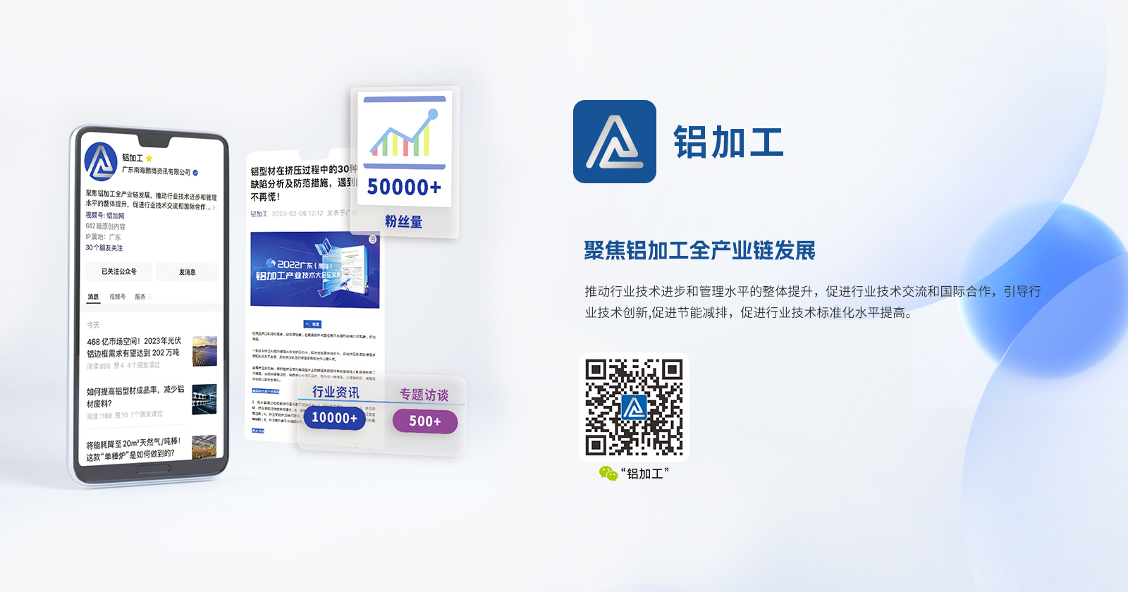 鋁加網(wǎng)(www.albiz.cn)是聞名鋁加工行業(yè)的垂直門戶網(wǎng)站,云聚鋁業(yè)新生態(tài),構(gòu)建鋁業(yè)新場(chǎng)景,以albiz.cn 網(wǎng)站為核心,以移動(dòng)云端、鋁加工微信、鋁加網(wǎng)視頻號(hào)、《鋁型材專刊》和《鋁世界》雜志為載體,成為了鋁加工行業(yè)資訊和精準(zhǔn)傳播的首選傳媒。鋁加網(wǎng),采集和發(fā)布全行業(yè)信息資訊,提供線上展覽、在線直播、短視頻、品牌策劃、品牌運(yùn)營(yíng)、品牌傳播等全方位的專業(yè)服務(wù)。
